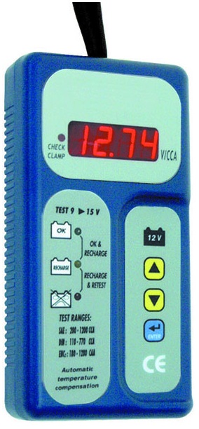 Digital battery tester with charging and cranking system tester.