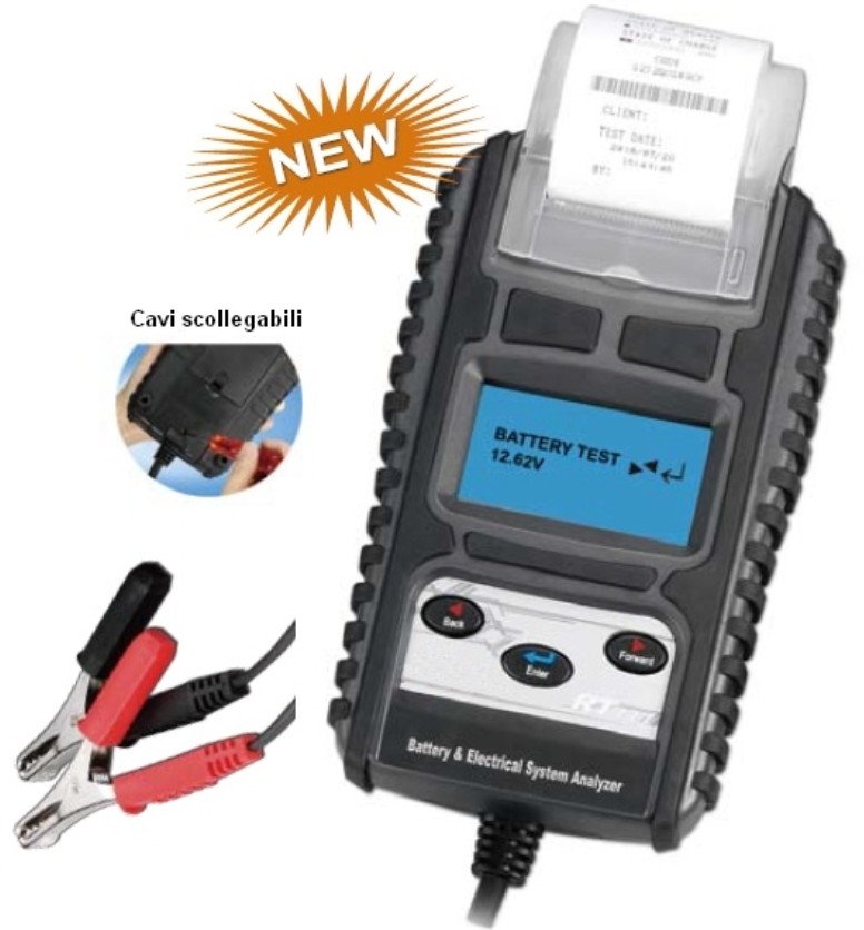 Perform tests on batteries 6 or 12V SLI (conventional liquid), sealed batteries SLA, VRLA, GEL, AGM flat plate or spiral 40 to 2100 CCA EN.